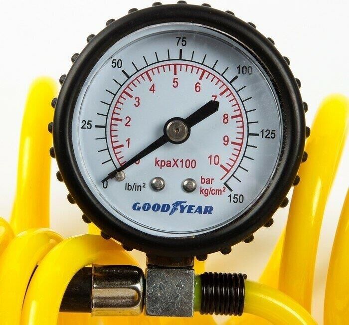 Воздушный компрессор Goodyear GY-50L LED 50 л/мин с фонарём, питание от АКБ, съемный витой шланг, сумка для хранения Воздушный компрессор Goodyear GY-50L LED 50 л/мин GY000113 с фонарем - незаменимый помощник в дороге для любого автолюбителя. Устройство применяется для накачивания автомобильных шин и колес OFF-ROAD техники, а также матрасов, лодок и мячей. Компрессор оснащен высокоточным манометром с погрешностью измерений до 5%. Питание устройства осуществляется напрямую через АКБ автомобиля. Технические характеристики Goodyear GY-50L LED GY000113 Напряжение, В 12 Тип двигателя электрический Производительность на входе, л/мин 50 Объем ресивера, л нет Транспортировочные колеса нет Частотный преобразователь нет Тип компрессора автокомпрессор Max давление, атм 10 Наличие фонаря да Защита от перегрева да