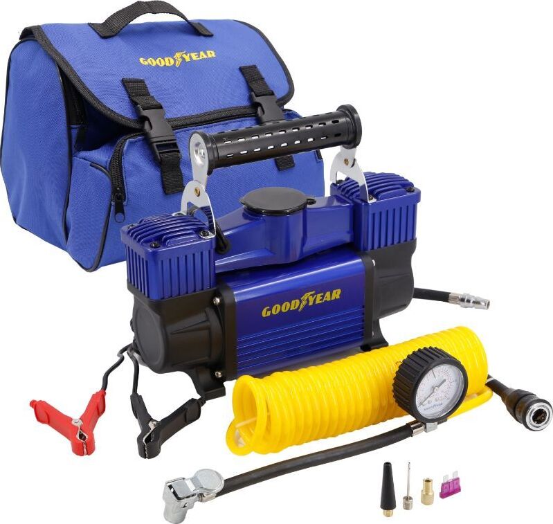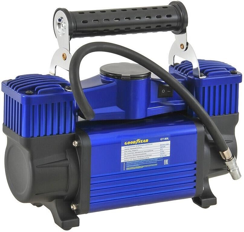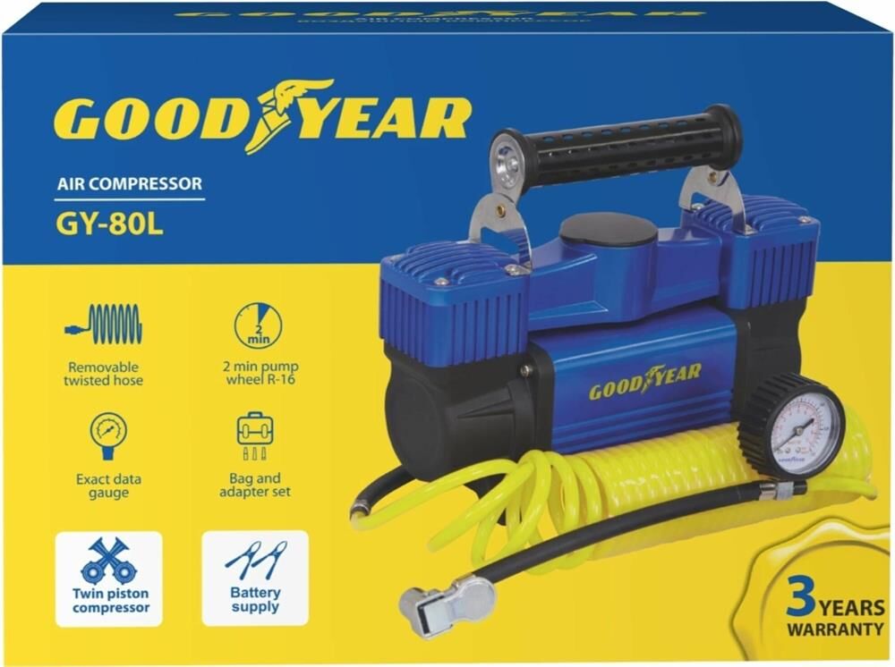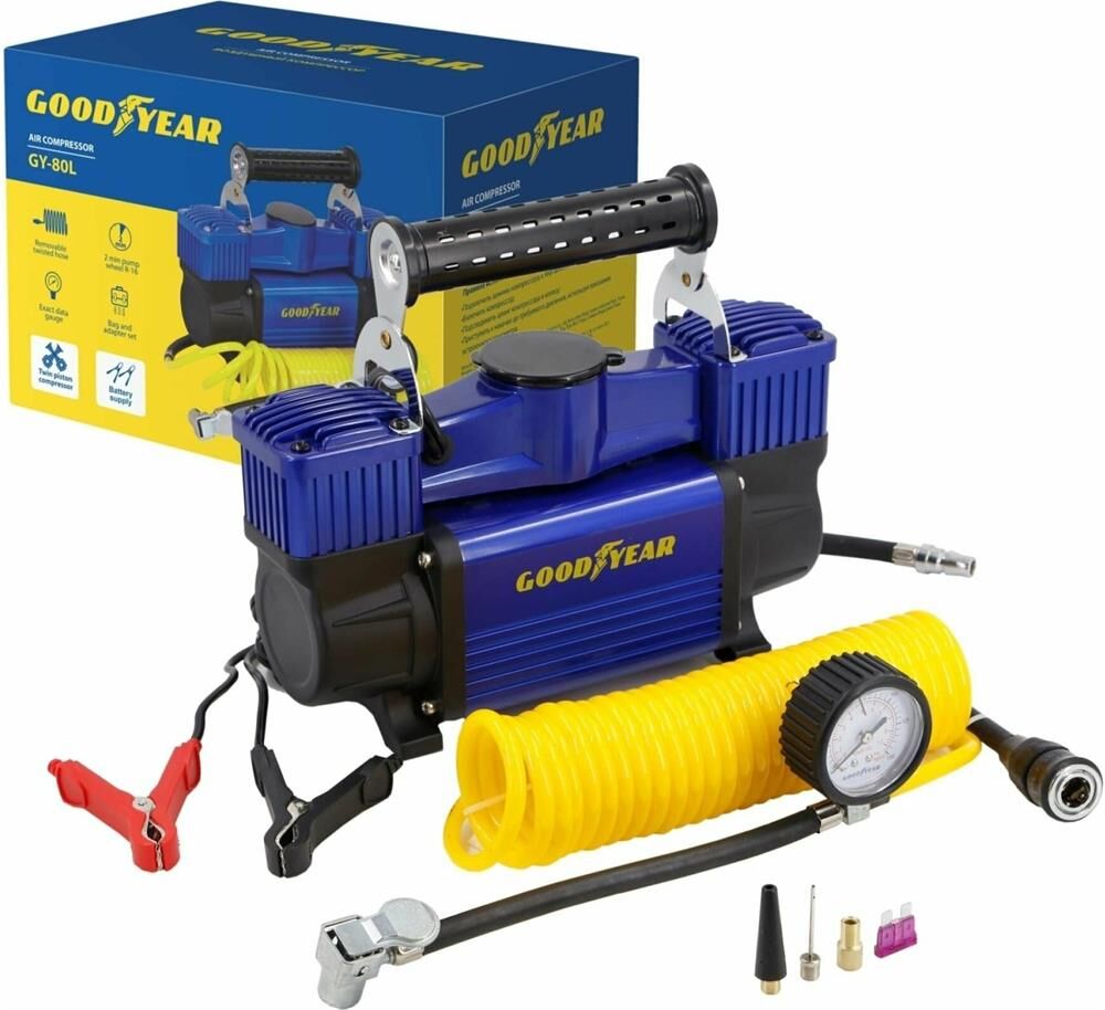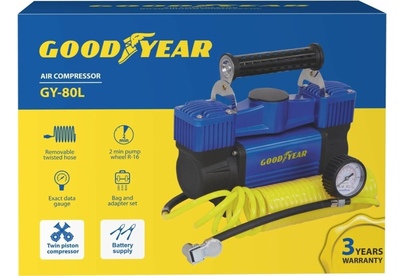 Авто-компрессор GOODYEAR GY000118 компрессор воздушный GY-80L 80 л/мин двухпоршневой питание от АКБ съемный витой шл