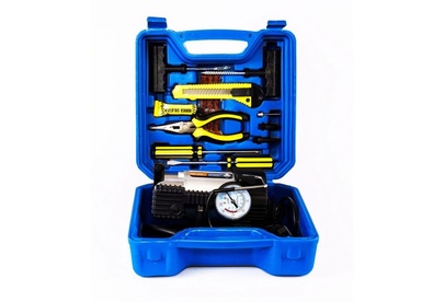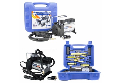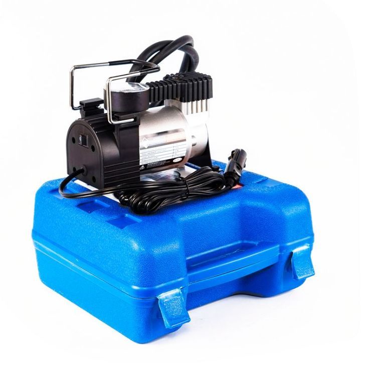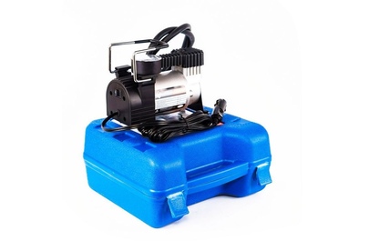 Мощность – 150 Вт. Максимальная сила тока – 15 А. Максимальное давление – до 10 кг/см2 (140PSI/10Bar) Производительность – до 35 л/мин. Шнур питания – 2,7 м. Воздушный шланг – 1 м. Пластиковый кейс для хранения и переноски Питание от гнезда прикуривателя Комплект насадок-переходников – 3 шт. Встроенный в штекер питания предохранитель Набор инструментов: плоскогубцы удлиненные – 1 шт., отвертка плоская – 1 шт., отвертка крестообразная – 1 шт., нож с выдвижным лезвием – 1 шт., спиральный рашпиль – 1 шт., шило- 1 шт., жгуты армированные – 3 шт., клей-активатор – 1 шт. Цвет- серебро Напряжение питания — 12В. Состав: металл, пластик