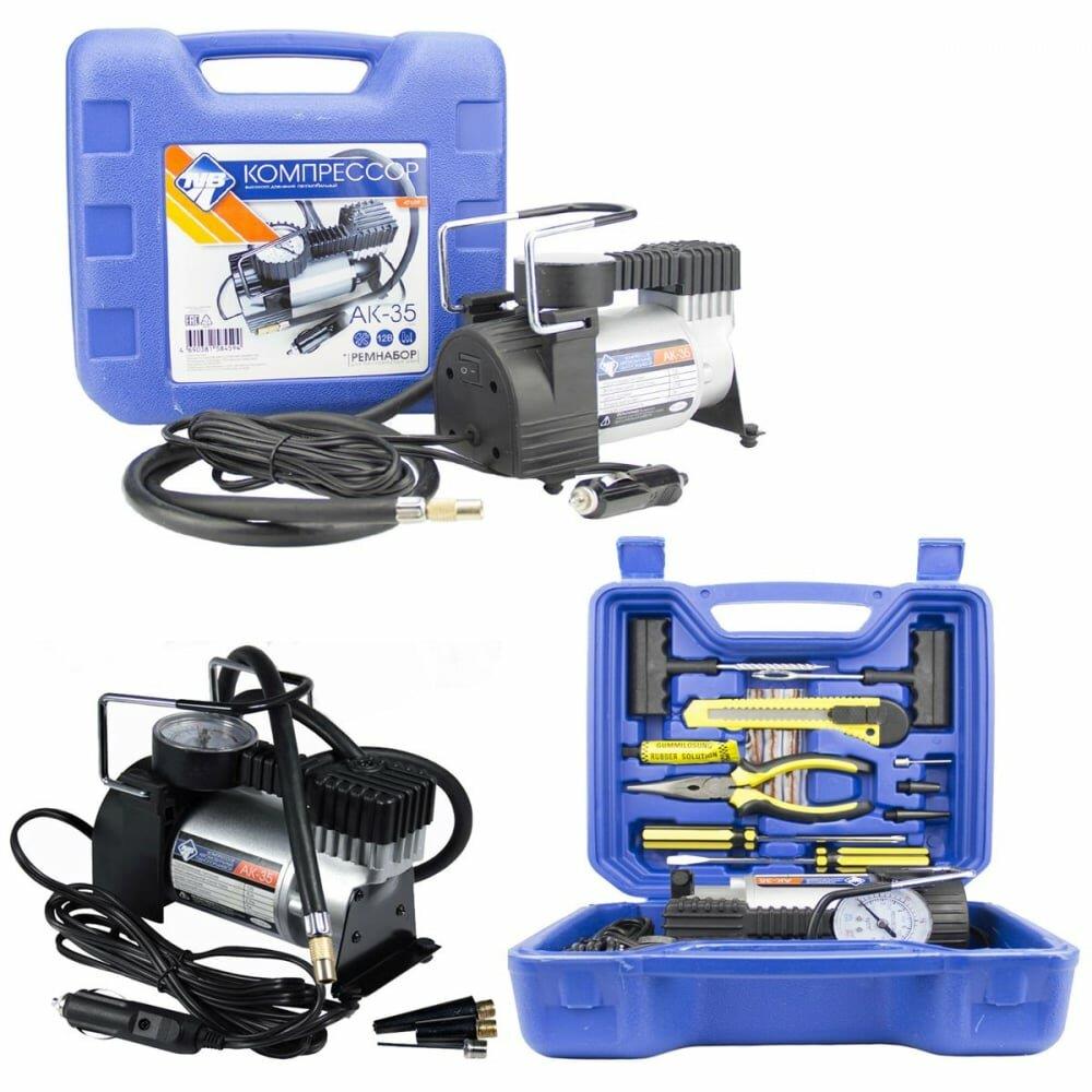 Авто-компрессор NOVA BRIGHT АК-35 Компрессор 35 л/мин.,140 PSI, 12В, металлический корпус, пластик. кейс с инструмен