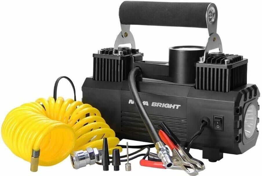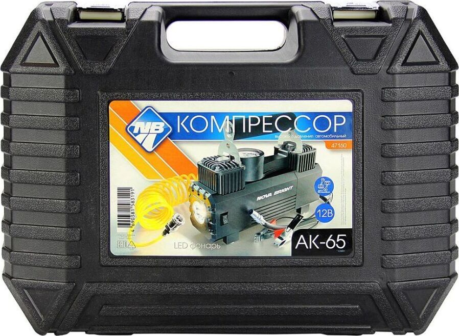 Авто-компрессор NOVA BRIGHT АК-65 Компрессор двухпоршневой, до 65 л/мин.,140 PSI, 12В, металлический корпус, LED-фон