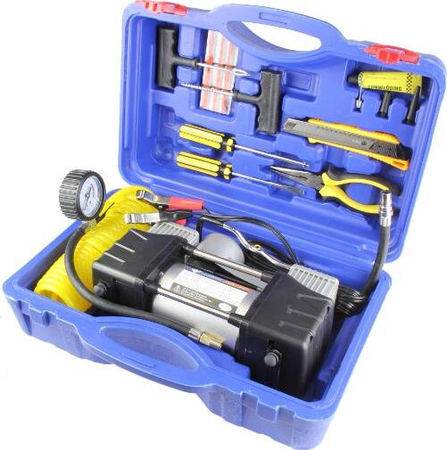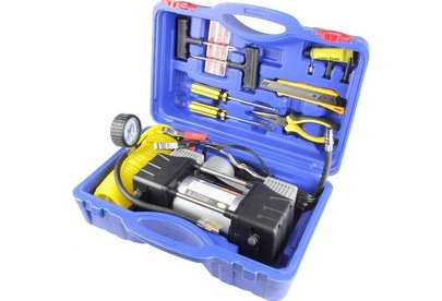 Авто-компрессор NOVA BRIGHT АК-75 двухпоршневой, пластиковый кейс с инструментами 36448