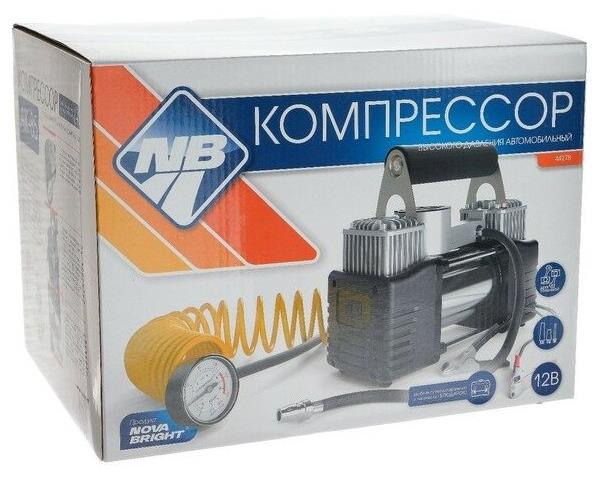 Авто-компрессор NOVA BRIGHT АК-85 Компрессор двухпоршневой, до 85 л/мин.,140 PSI, 12В, металлический корпус, в сумке
