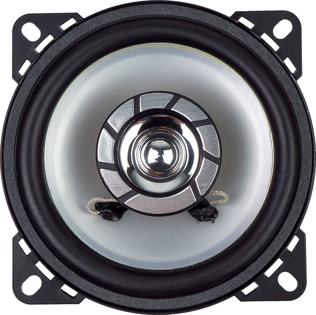 Тип акустической системы коаксиальная. Типоразмер, дюйм. 4. Количество полос 2. Частотный диапазон, Гц 80 - 15000. Чувствительность, дБ. 90. Сопротивление, Ом. 4. Номинальная выходная мощность, Вт. 35. Максимальная выходная мощность, Вт. 120. Установочная глубина, см. 4,2. Установочный размер, см. 9,2. Материал корпуса сталь. Материал подвеса бутилкаучук. Материал диффузора полипропилен. Материал магнита феррит. Комплектация 2 динамика, набор для установки, решетка, гарантийный талон, инструкция на русском языке. Размеры, см. (В х Ш х Г) 5,5x10,2. Размеры в упаковке, см. (В х Ш х Г) 14,4x28x7,1.