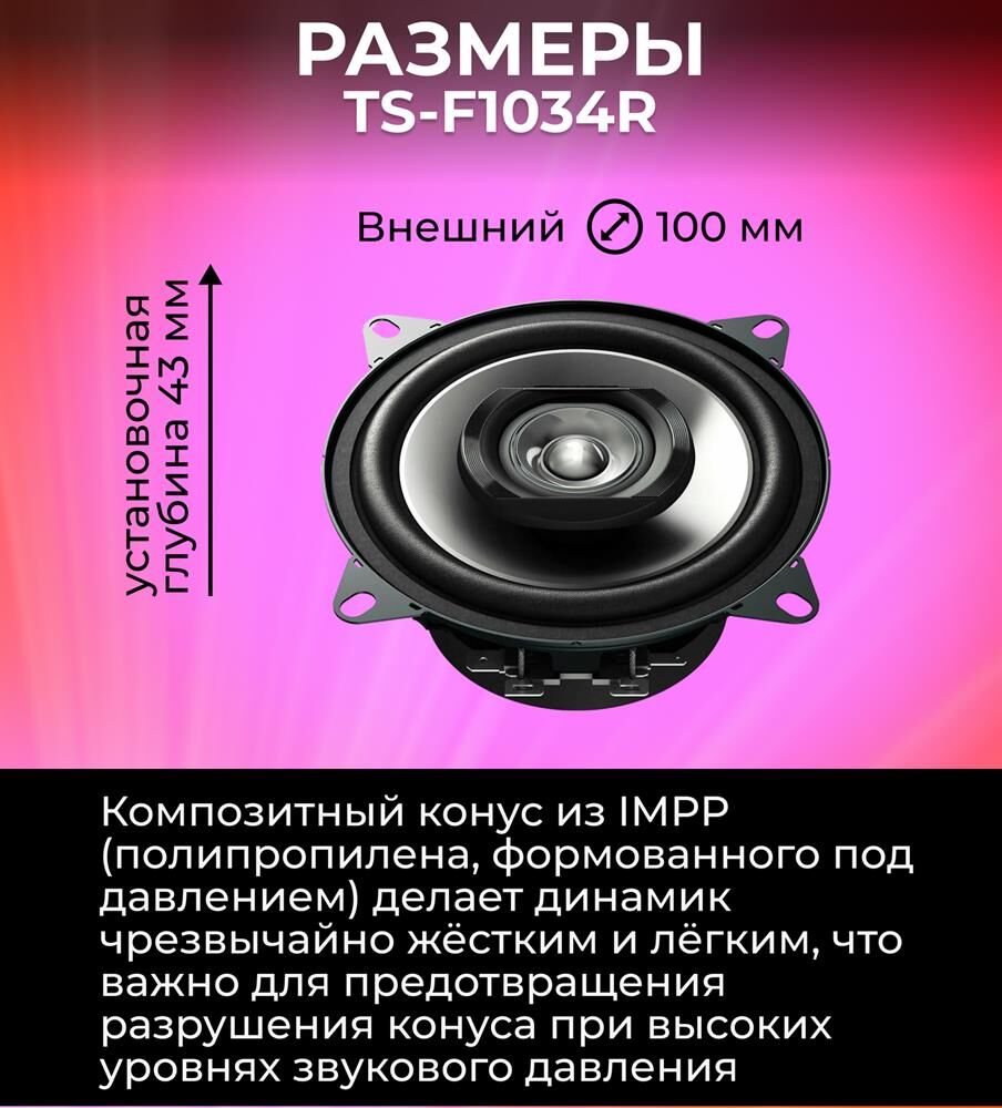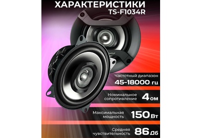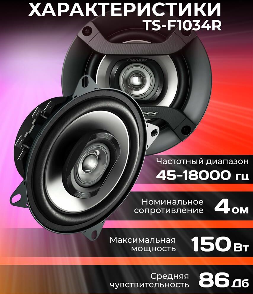 Автоакустика PIONEER TS-F1034R 190Вт 86дБ 4Ом 10см (4дюйм) (ком.:2кол.) коаксиальные двухполосные