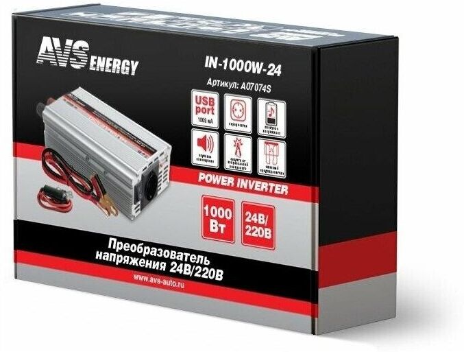 Автоинвертор AVS IN-1000W-24 24/220V (A07074S)