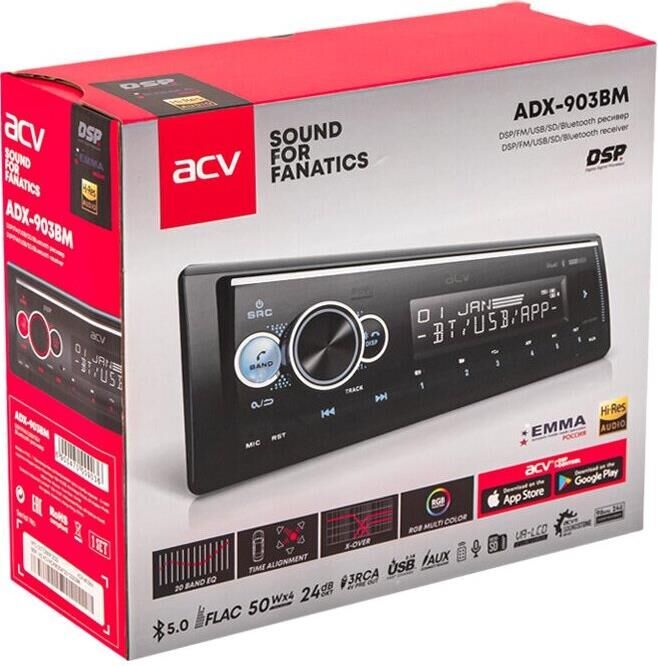 ACV ADX-903BM DSP ресивер FM/USB/SD/BT/AUX/3 пары RCA/MULTI/4*50Вт