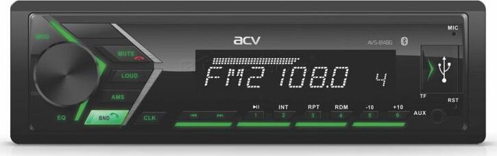 Магнитола 1 DIN с зеленой подсветкой, съемной панелью и Bluetooth. Читает MP3, WMA, WAV, FLAC файлы и оснащена RCA стерео аудиовыходом.