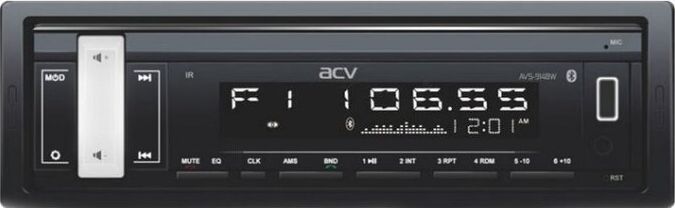 Магнитола с современным модулем Bluetooth, поддержкой приложений ACV RC для Android и ACV Control для iOS. Оснащена встроенным усилителем 4х50 Вт, RCA стерео аудио выходами, читает MP3/WMA с USB и SD носителей.