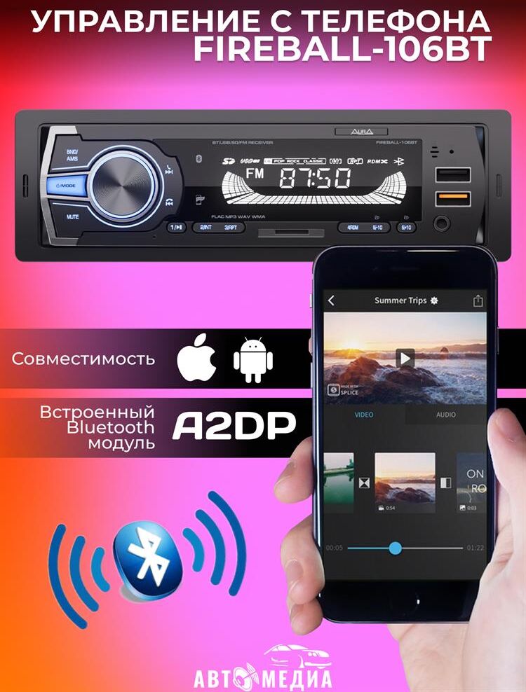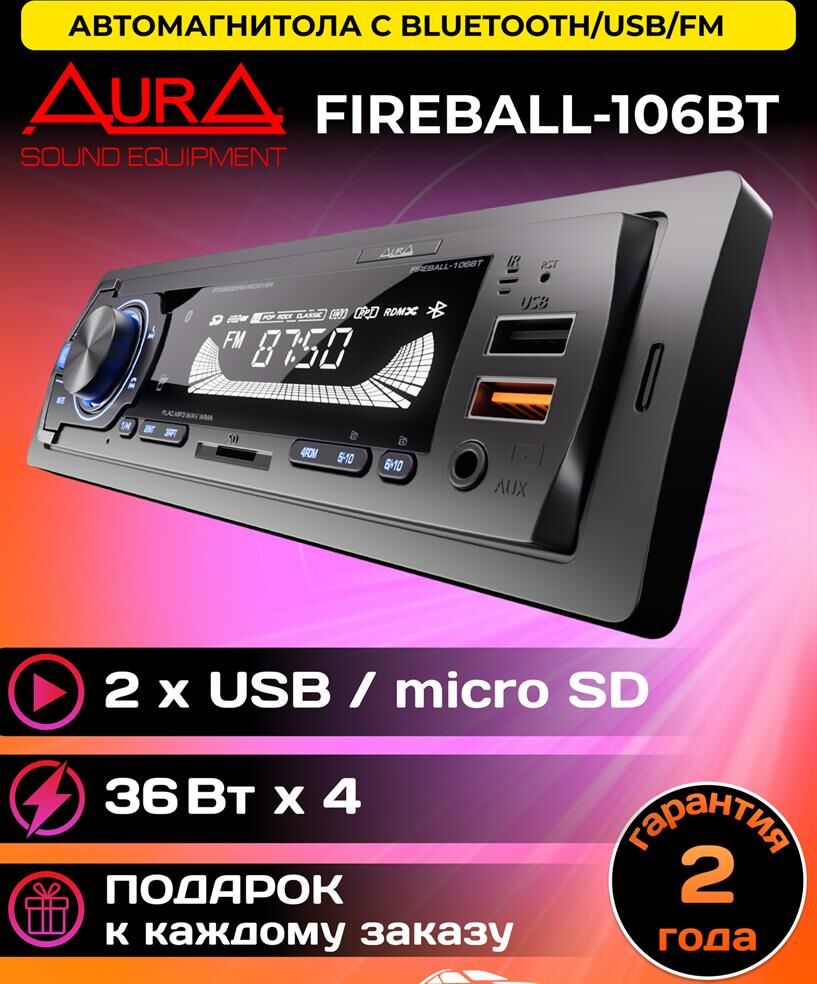 Автомагнитола AURA FIREBALL-106BT USB/SD ресивер