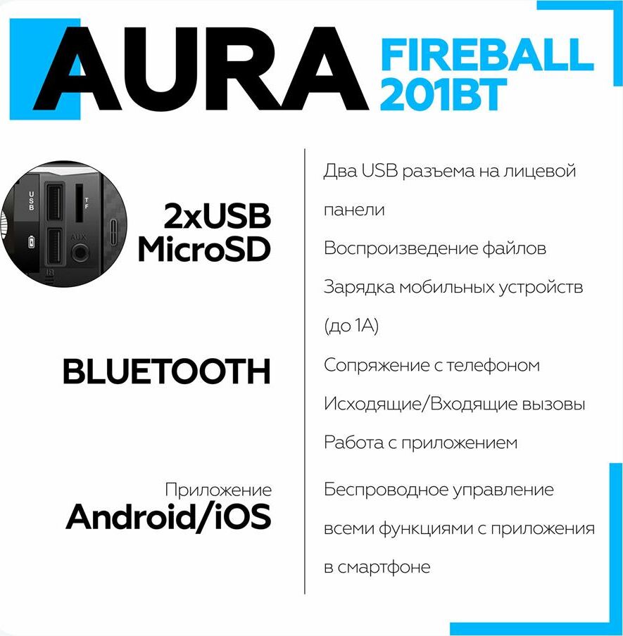 Автомагнитола AURA FIREBALL-201BT USB/SD ресивер