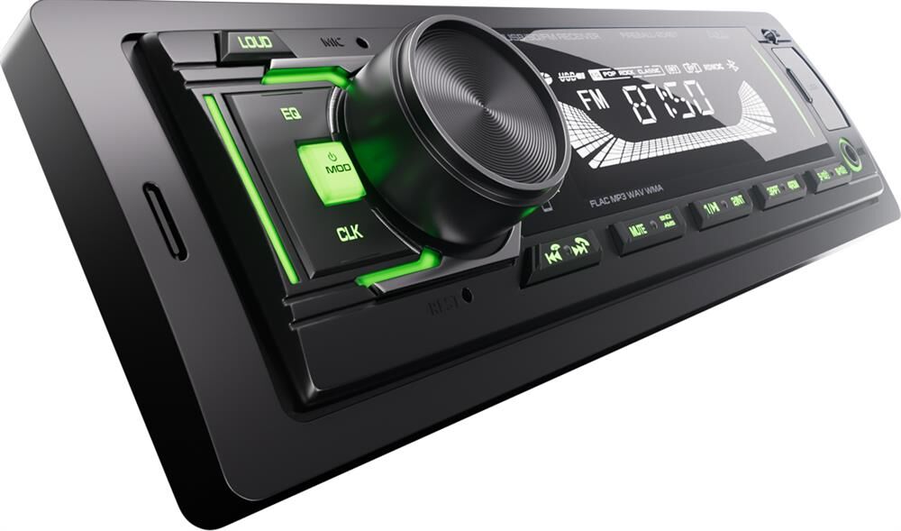 Автомобильный BT/USB ресивер Рабочее напряжение 12-24 Вольт Совместимое с iOS и Android приложение для управления всеми функциями ресивера Чтение звуковых форматов FLAC, MP3, WAV, APE, AAC Встроенный Bluetooth-модуль (A2DP) Максимальная выходная мощность: 36Вт Номинальная выходная мощность (при КНИ менее 1%): 10Вт Вход AUX (3,5 мм джек) Линейный выход RCA (1 пара) Предустановки эквалайзера (классическая/ популярная музыка, рок) Цифровой радио-тюнер Память на 18 FM радиостанций USB-порт ID3 тэги (английский язык) Несъемная панель Зеленая подсветка Жидкокристаллический (VA) дисплей ISO разъем (ISO коннектор в комплекте)