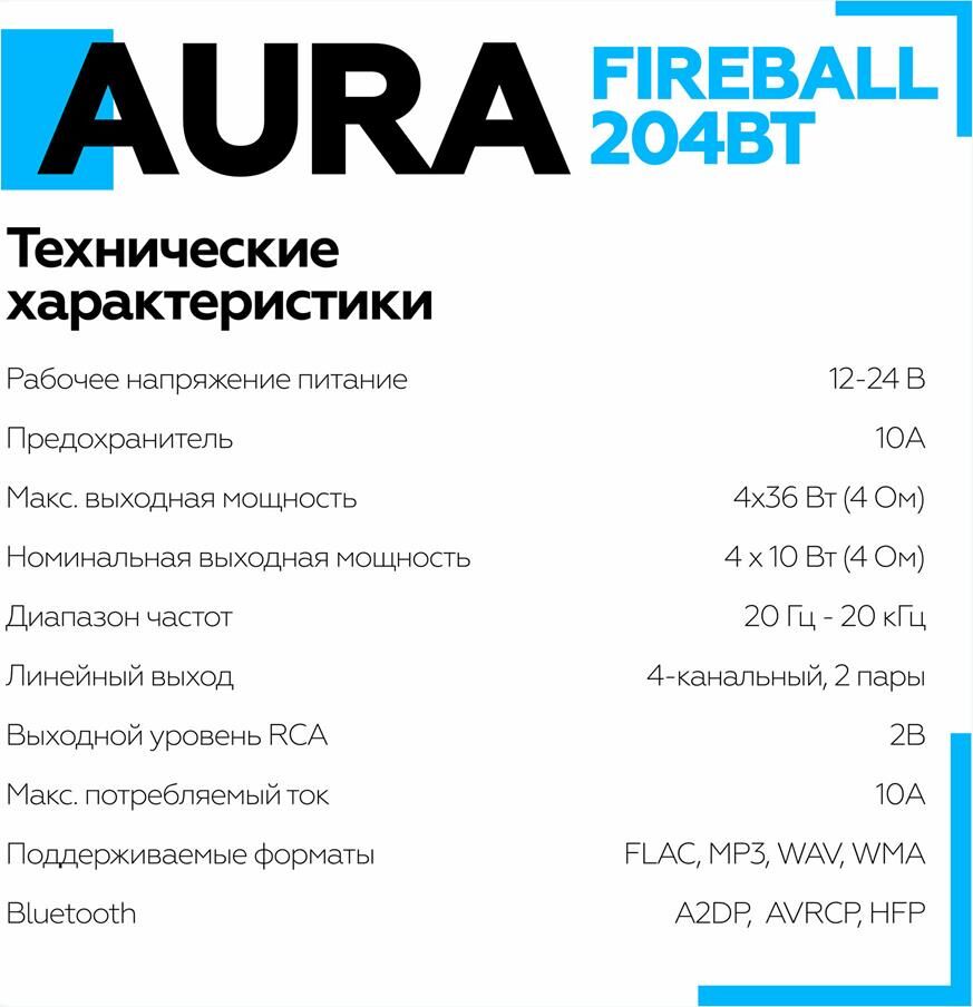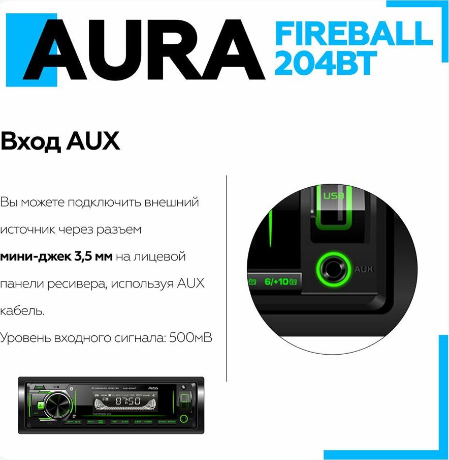 Автомагнитола AURA FIREBALL-204BT USB/SD ресивер