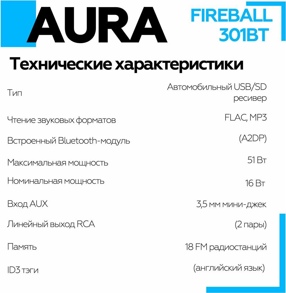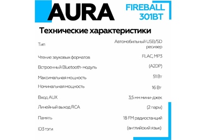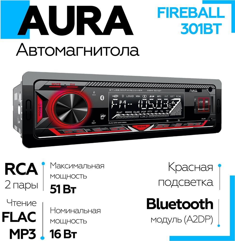 Автомагнитола AURA FIREBALL-301BT USB/SD ресивер