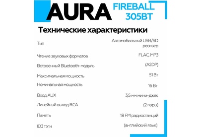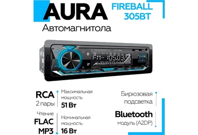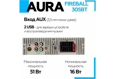 Автомагнитола AURA FIREBALL-305BT USB/SD ресивер
