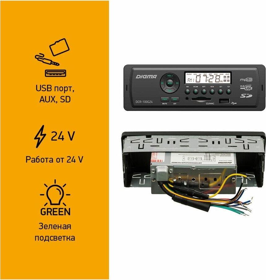 Автомагнитола DIGMA DCR-100G 24 Вольта
