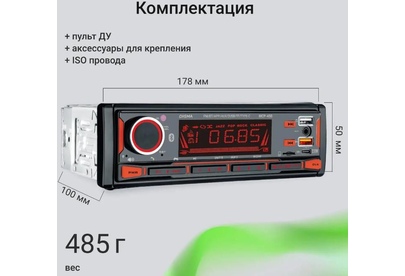 Типоразмер 1 din Максимальная мощность 4 х 45 Вт Выход для сабвуфера есть Питание 12 В Поддержка носителей CD-проигрыватель Нет DVD-проигрыватель Нет Воспроизведение с USB носителей есть USB-порт 2 фронтальных Воспроизведение с карт памяти есть Основной тип карт памяти SD/MMC Тюнер Память (станций) 18 Bluetooth Версия Bluetooth v5.0 Дополнительно в комплекте Пульт дистанционного управления есть Упаковка Габариты упаковки (ед) ДхШхВ 0.205x0.16x0.08 м Вес упаковки (ед) 0.64 кг