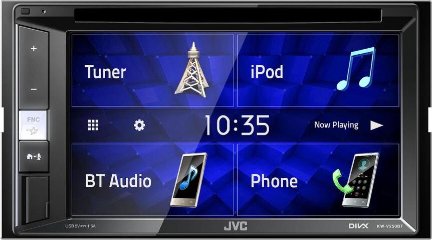 Беспроводная технология Bluetooth(R) (*доступные функции зависят от модели телефона) Одновременное подключение 2 телефонов по Bluetooth Передача и управление потоковым аудио по Bluetooth (A2DP, AVRCP) Подключение по Bluetooth до 5 аудио устройств (JVC Streaming DJ) Голосовой набор номера по Bluetooth (требуется телефон с функцией распознавания голоса) Загрузка телефонной книги по Bluetooth (PBAP) автоматическое сопряжение с iPhone поддержка Spotify(Android по Bluetooth, iPhone/iPod по Bluetooth или USB) 6,8-дюймовая четкая резистивная сенсорная панель Настройка оптимального угла просмотра Воспроизведение музыки с iPod/iPhone (через USB или Bluetooth) Беспроводные звонки по Bluetooth (HFP) Три высоковольтных (4,0 В), линейных выхода на предусилитель 13-полосный графический эквалайзер Space Enhancement Sound Response Sound Lift Звуковые задержки Сохранение настроек в случае отключения питания