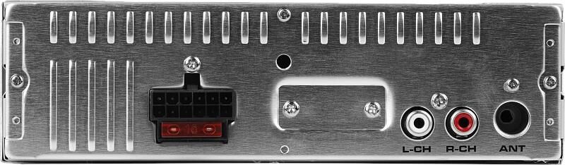 Головное устройство формата 1 DIN c Bluetooth. Управление радиоприемником с помощью приложения SmartBT iPlug. Переключение характеристик тембра. 1 пара RCA выходов. Напряжение питания, В: 14,4 (12) Установочные размеры, мм: 182 х 53 х 105 Диапазон принимаемых частот тюнера, МГц: 87,5 – 108 Максимальная выходная мощность (нагрузка 4 Ом), Вт: 4 х 45 Напряжение на линейном выходе (макс.), В: 5 Пределы регулировки тембра на частотах эквалайзера, дБ: ±10 Частотная характеристика аудиопроигрывателя, Гц, не уже: 20 - 20000 Цвет подсветки: красный