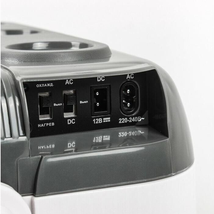 Питание: 12 В/220 В •Мощность в режиме охлаждения: 45 Вт •Мощность в режиме нагрева: 35 Вт •Емкость: 32 л •Размер упаковки: 480*320*450 мм •Внешний размер (без упаковки): 475*310*440 мм •Размер холодильной камеры: 375*245*345 мм •Вес: 6,6 кг •Работает по принципу эффекта Пельтье •Максимальное охлаждение: 15-18 С от температуры окружающей среды •Минимальная температура: +5 С (при температуре окружающей среды не выше +23 С и непрерывной работе не менее 3-х часов) •Максимальный нагрев: +65 С •Подстаканники на верхней крышке