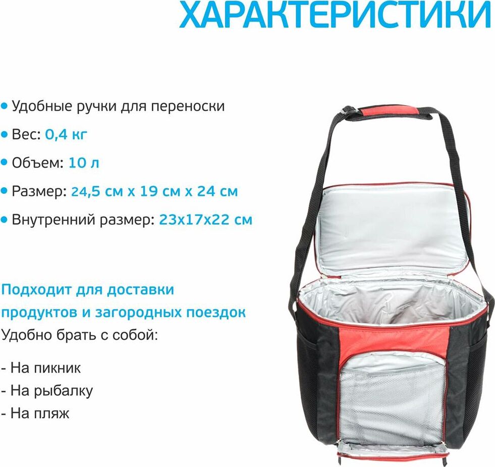 Благодаря высококачественным внутренним элементам термосумка AVS способна поддерживать температуру помещенных в нее продуктов в среднем до 12 часов. Снаружи сумка выполнена из плотной износостойкой ткани, внутри имеет термоизоляционную прокладку и вспененный полиуретан, способный "отражать" холодный воздух. Также данная термосумка защищена изнутри водонепроницаемой и экологически чистой пленкой Peva, которая не содержит тяжелых металлов и состоит из растительного сырья. Это обеспечивает определенную безопасность для ваших продуктов и для окружающей среды в целом. Сумка имеет вместительное внутреннее отделение, закрывающееся на молнию, а снаружи - два сетчатых боковых кармана и один передний карман на молнии. Для удобства переноски предусмотрен регулируемый плечевой ремень. Характеристики •Объем: 20 л •Размер: 31,5*22*33 см •Внутренний размер: 29*20*30 см •Вес: 0,61 кг Материал: полиэстер, полиуретан, PEVA Состав: Полиэстер, полиуретан, PEVA