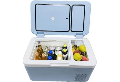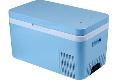 Мобильный холодильник компрессорный. габариты 34,5х58х32,5см. Температура хранения от -18 до +20 °C. Общий объем, 24л. Цвет Голубой. Класс энергоэффективности A++. Управление электронное.Суточный расход электроэнергии, при температуре окружающего воздуха 24°C, 0.186кВтч. Вес, 11,2 кг. Дисплей. Инверторный компрессор.