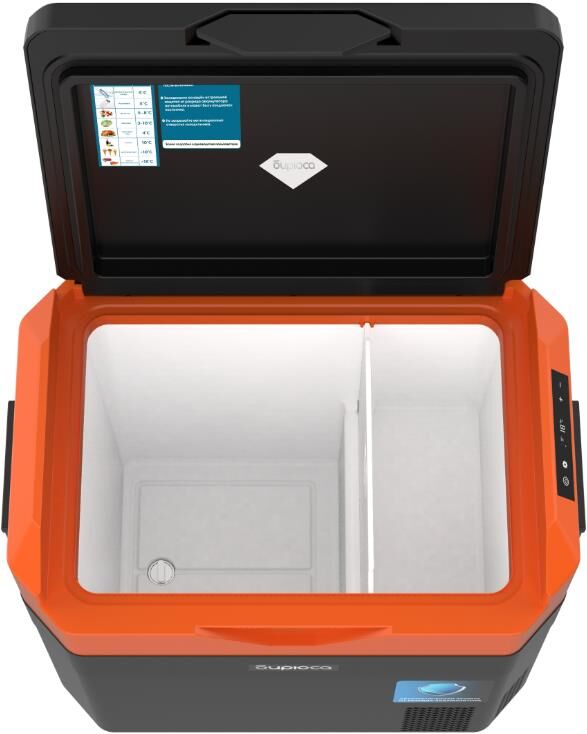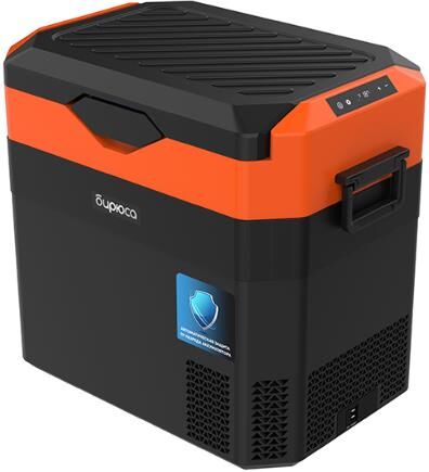 Автохолодильник компрессорный • цвет Оранжево-черный • сенсорный LED дисплей • температура в режиме морозильника от -18 до 0 °C • температура в режиме холодильника от 0 до +15 °C • работа от сети/прикуривателя автомобиля/аккумулятора • температура отображается в градусах Цельсия, Фаренгейта • адаптер 12/24/220В в комплекте • возможность выбора уровня защиты разряда аккумулятора машины • разделочная доска в комплекте • режим быстрого охлаждения • режим экономии энергии • габариты 49,2х55,8х36,2см • объем 38л