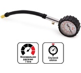 Аналоговый манометр, с помощью которого, без затруднений, любой автолюбитель сможет измерить давление в шинах. Необходимость такого аксессуара знает каждый автомобилист, хоть раз столкнувшийся с повреждением покрышки или ухудшением управляемости из-за приспущенных колес. • Две шкалы измерения давления (атм (bar) -> psi) • Диапазон измерений: 2,00-100,00 PSI (фунт/кв. дюйм); 0,15-7,00 BAR (атм) • Погрешность прибора: ± 0,05 BAR • Спускной клапан