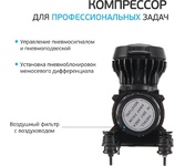 Напряжение питания: 12 В. Максимальное давление: 14 атм (BAR). Рабочее давление: 0 - 6,89 атм (BAR). Максимальная производительность: 98 л/мин. Диапазон рабочих температур: -30 °C +80 °C. Уровень шума: 70 дБ. Длина универсального шланга: 7,5 м. Масса: 5,5