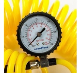Воздушный компрессор Goodyear GY-50L LED 50 л/мин с фонарём, питание от АКБ, съемный витой шланг, сумка для хранения Воздушный компрессор Goodyear GY-50L LED 50 л/мин GY000113 с фонарем - незаменимый помощник в дороге для любого автолюбителя. Устройство применяется для накачивания автомобильных шин и колес OFF-ROAD техники, а также матрасов, лодок и мячей. Компрессор оснащен высокоточным манометром с погрешностью измерений до 5%. Питание устройства осуществляется напрямую через АКБ автомобиля. Технические характеристики Goodyear GY-50L LED GY000113 Напряжение, В 12 Тип двигателя электрический Производительность на входе, л/мин 50 Объем ресивера, л нет Транспортировочные колеса нет Частотный преобразователь нет Тип компрессора автокомпрессор Max давление, атм 10 Наличие фонаря да Защита от перегрева да
