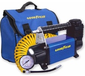 Воздушный компрессор Goodyear GY-50L 50 л/мин, питание от АКБ, съемный витой шланг, сумка для хранения Воздушный компрессор Goodyear GY-50L 50 л/мин GY000112 применяется для накачивания автомобильных и велосипедных шин, колес OFF-ROAD техники, а также мячей, резиновых лодок, матрасов. Агрегат оснащен высокоточным манометром с погрешностью измерений до 5%. Питание компрессора осуществляется напрямую от АКБ автомобиля или мототехники. Компрессор незаменим в арсенале любого водителя. Подходит для шин R13-R17. Технические характеристики Goodyear GY-50L GY000112 Напряжение, В 12 Тип двигателя электрический Производительность на входе, л/мин 50 Объем ресивера, л нет Транспортировочные колеса нет Частотный преобразователь нет Тип компрессора автокомпрессор Max давление, атм 10 Наличие фонаря нет Защита от перегрева да