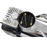 Допустимое напряжение: 10-13,5 В. Максимальный ток потребления: 14 А. Максимальное давление: 10 Атм. (кг/см2). Время непрерывной работы: 30 мин. Производительность: 57 л/мин. Рабочая температура: -40°С +70°С. Масса: 2,7 кг. Навинчивающаяся насадка на ниппель колеса. Подключение в прикуриватель. Спускной клапан – DEFLATOR. Универсальный шланг - удлинитель - 5.5 м. Встроенный плавкий предохранитель - 15A.