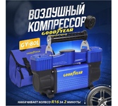 Авто-компрессор GOODYEAR GY000118 компрессор воздушный GY-80L 80 л/мин двухпоршневой питание от АКБ съемный витой шл