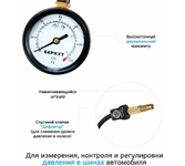 <p>Манометр очень удобен в использовании, так как снабжен специальным спускным клапаном - дефлятором, позволяющим снижать уровень давления в колесе. Джиперы-профессионалы, которые, для улучшения проходимости автомобиля, преодолевают препятствия на полуспущенных колесах, по достоинству оценят эту функцию.<br /><br />Технические характеристики:<br /><br />- Диапазон измерений: ADG-031 0,00-35,00 PSI (фунт/кв.д.).&nbsp;0,0-2,5 атм (кг/см2).<br /><br />- Цена деления: ADG-031 1,00 PSI(фунт/кв. дюйм).&nbsp;0,1 атм. (кг/см2).<br /><br />- Погрешность прибора: &plusmn; 0,5 PSI/ 0,05 BAR.</p> <p>Комплект:</p> <p>Высокоточный манометр низкого давления, 2 шкалы (атм/PSI).<br />Спускной клапан "Дефлятор".<br />Сумка-чехол для хранения.</p>