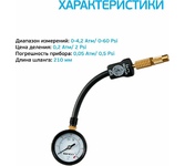 Диапазон измерений ADG-031: 0,0-2,5 атм (кг/см2) ADG-032: 0,0-4,2 атм (кг/см2). Диапазон рабочих температур от -20°С до +40°С. Погрешность прибора 0,05 BAR