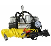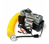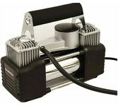 Мощность – 180 Вт. Максимальная сила тока – 15 А. Максимальное давление – до 10 кг/см? (140PSI/10Bar) Производительность – до 85 л/мин. Шнур питания – 2,8 м. Воздушный шланг – 5м. Тканевая сумка для хранения и переноски Подключение к клеммам АКБ при помощи металлических зажимов Комплект насадок-переходников – 3 шт. Цвет- серебро Напряжение питания — 12В. Состав: металл, пластик