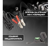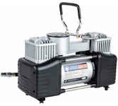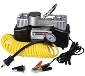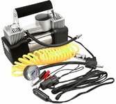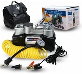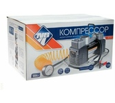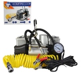 Мощность – 180 Вт. - Максимальная сила тока – 20 А. - Максимальное давление – до 10 кг/см? (150PSI/10Bar) - Производительность – до 75 л/мин. - Шнур питания – 2,7 м. - Воздушный шланг – 5м. - Пластиковый кейс для хранения и переноски - Подключение к клеммам АКБ при помощи металлических зажимов - Комплект насадок-переходников – 3 шт. -Набор дорожного инструмента Цвет- серебро Напряжение питания - 12В. Состав:металл, пластик