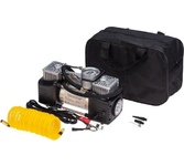 Компрессор автомобильный, металлический усиленный, двухпоршневой, 60 л/мин, с питанием от АКБ автомобиля, в кейсе с набором инструментов REXANT. В комплекте поставляются переходники для накачивания мячей, матрасов, резиновых лодок. В набор инструментов входят: две отвертки (шлицевая и крестовая), нож, плоскогубцы, шило, рашпиль, 5 жгутов. Особенности: двухпоршневой механизм; защита от перегрева; можно использовать для больших колес; поставляется в кейсе с набором инструментов. Напряжение - 12В Номинальная сила тока - 15-25А Подключение - от аккумулятора Максимальное давление - до 10Атм Время непрерывной работы - до 20 мин. Производительность - 60л/мин Длина провода - 3м Длина шланга - 3м Компрессор автомобильный - 1 шт. Пневмошланг - 1 шт. Упаковка - 1 шт. Пластиковый кейс для хранения - 1 шт. Паспорт изделия - 1 шт. Насадки - 3 шт. Набор инструментов - 2 отвертки (крестовая и шлицевая), нож, плоскогубцы, шило, рашпиль, 5 жгутов.