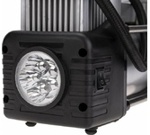 Компрессор автомобильный, металлический, усиленный, двухпоршневой, 60 л/мин, с питанием от АКБ автомобиля и функцией автостоп REXANT. Используется для накачки автомобильных шин легковых автомобилей, кроссоверов, внедорожников и малого коммерческого транспорта. Прибор оснащен мощным электрическим двигателем и повышенной системой безопасности. Устройство рассчитано на длительную эксплуатацию в суровых климатических условиях. В комплекте поставляются переходники для накачивания мячей, матрасов, резиновых лодок. Особенности: функция автостоп; встроенный LED фонарь для подсветки; двухпоршневой механизм; защита от перегрева; можно использовать для больших колес. Напряжение - 12В Номинальная сила тока - 15-25А Подключение - от аккумулятора Максимальное давление - до 10Атм Время непрерывной работы - до 20 мин. Производительность - 60л/мин Длина провода - 3м Длина шланга - 3м Компрессор автомобильный - 1 шт. Пневмошланг - 1 шт. Упаковка - 1 шт. Сумка для хранения - 1 шт. Паспорт изделия - 1 шт. Насадки - 3 шт.