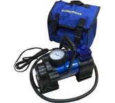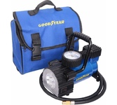 Производительность 35 л/мин, Давление до 7 атм, Для шин R13-R17, Питание 12 V, Защита флажковый предохранитель, Материал Сталь, Вес 1,9 кг, Воздушный компрессор Goodyear GY-35L LED 35 л/мин с фонарём, со съемной ручкой, сумка для хранения.