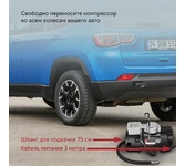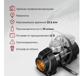 Максимальный ток потребления 15 A. Максимальное давление, атм.10.2. Напряжение питания 12 В. Производительность 35 л/мин. Длина шланга 0.75 м. Длина провода питания 3 м.