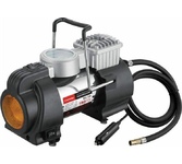 Автомобильный компрессор MTX C-65 58044 производительностью 65 л/мин работает от сети 12 В и предназначен для накачивания шин легковых автомобилей при помощи сжатого воздуха под давлением 10 бар. Также с его помощью можно подкачать резиновый матрац, мяч, лодку и другие предметы, для этого в комплект поставки включены адаптеры с разными наконечниками. Компрессор будет полезен автовладельцам, пригодится в поездке и на отдыхе. Преимущества Возможность подключения к аккумулятору автомобиля — в комплект поставки входит переходник со штекера для прикуривателя на клеммы. Безопасность — токопроводящие элементы надежно изолированы (класс защиты II) плавкий предохранитель на проводе питания при превышении номинального тока защищает мотор от поломки. Удобный контроль давления — манометр расположен на шланге.|Защита от превышения давления — спускной клапан-дефлятор на конце шланга позволяет сбрасывать излишки воздуха, контролируя это по манометру.|Свободное передвижение без перестановки компрессора — длина шланга составл
