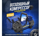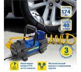 GOODYEAR GY000116 GY-45L CASE 45 л/мин Компрессор воздушный автомобильный Goodyear GY-45L/case с повышенной производительностью. Не требует обслуживания. Накачивает колесо R-16 за 3,5 минуты. Высокоточный манометр. Кейс и набор переходников в комплекте. Флажковый предохранитель в капсуле на контактном проводе. Металлический радиатор охлаждения камеры поршня. Расширенная гарантия (3 года). Оригинальный лицензированный продукт. Температура эксплуатации - -40..60°С. Время непрерывной работы - 30 минут.
