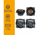 Коаксиальные двухполосные колонки автомобильные. Частотный диапазон 90Гц-20КГц. Форма динамиков круглая. Размер динамика10 см (4 дюйм.). Номинальная мощность 80 Вт. Максимальная мощность 160 Вт. Чувствительность 86 дБ. Импеданс 4 Ом. Глубина установки 43 мм.