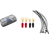 Длина заземляющего кабеля: 1 м Толщина жилы заземляющего кабеля: 0,20 х 27 мм Наружный диаметр заземляющего кабеля: 6.5 мм Толщина нити заземляющего кабеля: 0,20 мм Силовой кабель Длина силового кабеля: 5 м Толщина жилы силового кабеля: 0,20 х 27 мм Толщина нити силового кабеля: 0,20 мм Особенности модели Материал проводника: омедненный алюминий Общие характеристики Клеммы: Круглые 8AWG – 2 шт, вилочные 8AWG -2 шт Держатель предохранителя: Mini ANL + предохранитель Mini ANL 40А Диапазон рабочих температур: -40 +65 С Межблочный кабель Длина межблочного кабеля: 5 м Толщина жилы межблочного кабеля: 0,12 х 30 мм Толщина нити межблочного кабеля: 0,12
