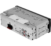 Головное устройство формата 1 DIN c Bluetooth. Управление радиоприемником с помощью приложения SmartBT iPlug. Переключение характеристик тембра. 2 пары RCA выходов. Напряжение питания, В: 14,4 (12) Установочные размеры, мм: 182 х 53 х 89 Диапазон принимаемых частот тюнера, МГц: 87,5 – 108 Максимальная выходная мощность (нагрузка 4 Ом), Вт: 4 х 40 Напряжение на линейном выходе (макс.), В: 5 Пределы регулировки тембра на частотах эквалайзера, дБ: ±7 Частотная характеристика аудиопроигрывателя, Гц, не уже: 20 - 20000 Цвет подсветки: красный