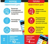 Аккумулятор холода. Для поддержания температуры охлажденных продуктов питания и напитков в термохолодильниках и термосумках во время транспортировки. Состав: корпус - полиэтилен пищевой пластик, хладагент - нетоксичный теплоноситель.