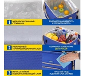 Объем 30 литров Габариты 380 х 350 х 250 мм Вес 0,65 кг Вес нагрузки 7 кг ОПИСАНИЕ ТЕХНИЧЕСКИЕ ХАРАКТЕРИСТИКИ ПРЕИМУЩЕСТВА Термосумка Goodyear поддерживает определенную температуру внутри и сохраняет свежесть продуктов в течение долгого времени. Это незаменимый помощник при транспортировке продуктов, выездов на пикник и в путешествия, для рыбалки и туризма. Термосумка поддерживает тепло или холод до 85 часов. Она сохранит свежесть и качество охлажденного или замороженного мяса, рыбы, морепродуктов, а также овощей, фруктов, прохладительных напитков и медикаментов. Кроме того, сумка-холодильник идеально подходит для поддержания температуры готовых горячих блюд и детского питания. Внутренний металлизированный слой AlFoil делает отсек для хранения герметичным и защищает сумку от протекания. Материал не впитывает запахи и его просто поддерживать в чистоте. С наружной стороны сумка-холодильник выполнена из плотной износостойкой ткани, которая не промокает и легко моется.