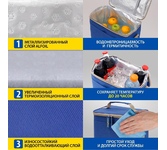 Благодаря высококачественным внутренним элементам термосумка AVS способна поддерживать температуру помещенных в нее продуктов в среднем до 12 часов. Снаружи сумка выполнена из плотной износостойкой ткани, внутри имеет термоизоляционную прокладку и вспененный полиуретан, способный "отражать" холодный воздух. Также данная термосумка защищена изнутри водонепроницаемой и экологически чистой пленкой Peva, которая не содержит тяжелых металлов и состоит из растительного сырья. Это обеспечивает определенную безопасность для ваших продуктов и для окружающей среды в целом. Сумка имеет вместительное внутреннее отделение, закрывающееся на молнию, а снаружи - два сетчатых боковых кармана и один передний карман на молнии. Для удобства переноски предусмотрен регулируемый плечевой ремень. Характеристики •Объем: 20 л •Размер: 31,5*22*33 см •Внутренний размер: 29*20*30 см •Вес: 0,61 кг Материал: полиэстер, полиуретан, PEVA Состав: Полиэстер, полиуретан, PEVA