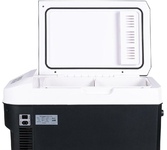 Мобильный холодильник компрессорный. Габариты В/Ш/Г 35,5х42,5х32см. Температура хранения от -18 до +20 °C. Общий объем, 18л. Цвет белый. Класс энергоэффективности A++. Управление электронное. Суточный расход электроэнергии, при температуре окружающего воздуха 24°C, 0.172кВтч. Вес,8.34кг. Дисплей. Инверторный компрессор.